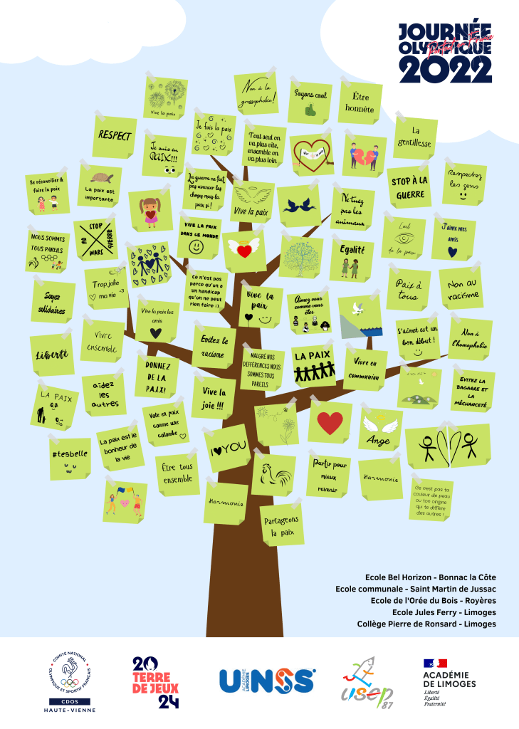 - Ecole Bel Horizon – Bonnac-la-Côte : Particulièrement sensible à la notion de « bien vivre ensemble », l’équipe pédagogique de l’école Bel Horizon a adhéré avec enthousiasme au thème de la journée olympique 2022 « Bouger pour la paix ».