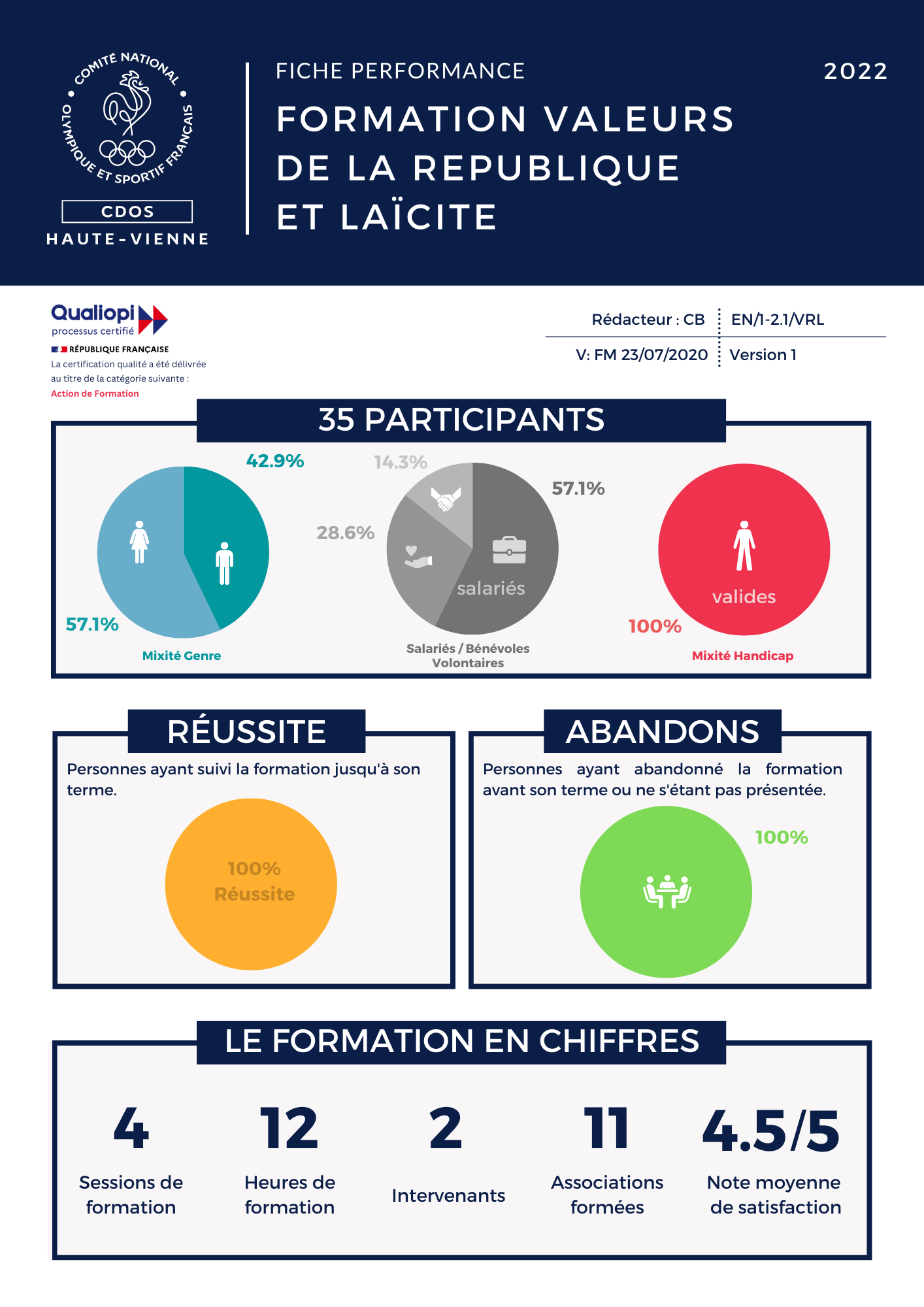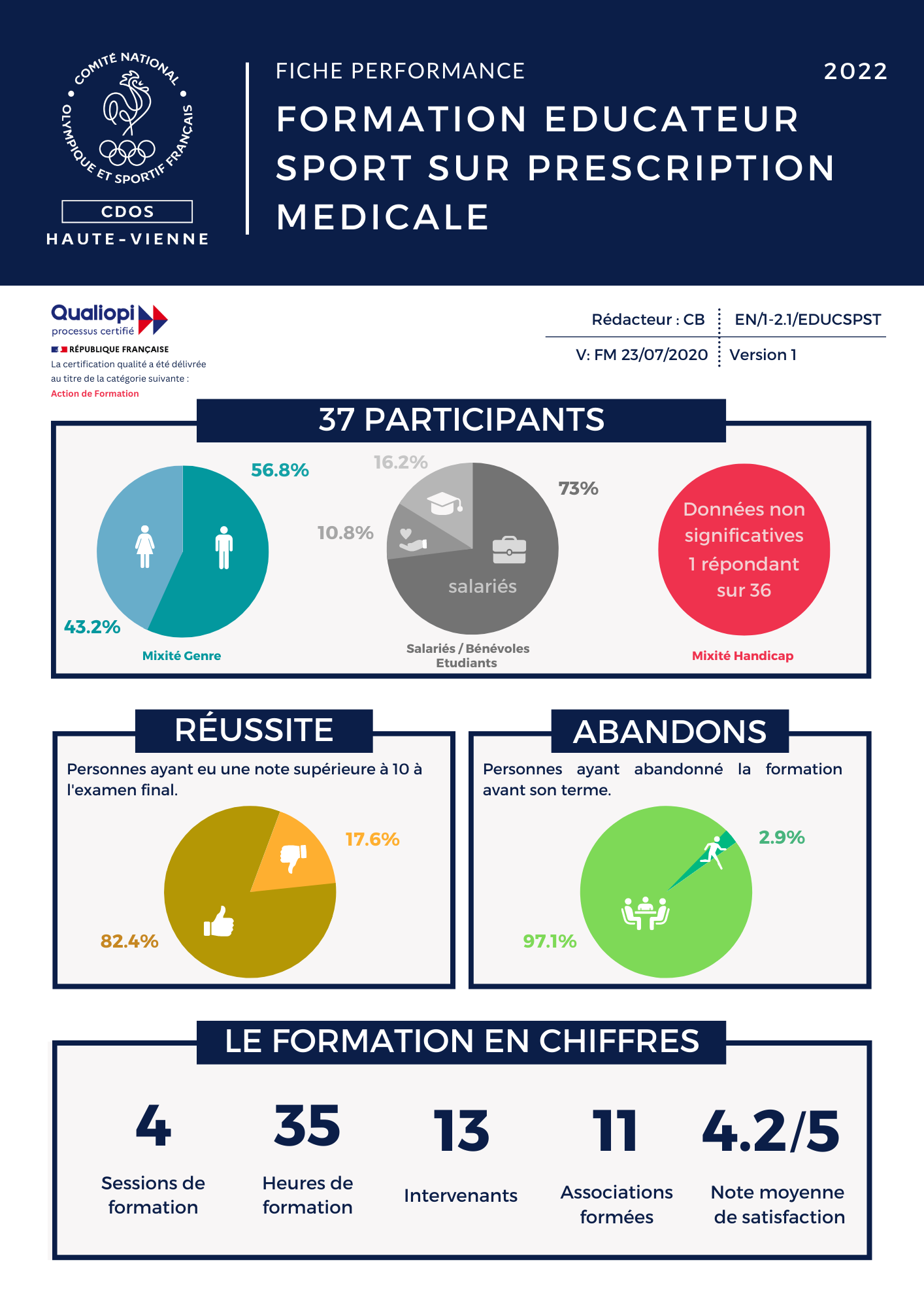 Pour l’année 2022, 8 sessions de formation ont été organisées, « Educateur sport sur prescription médicale », et « Valeurs de la République et Laïcité ».