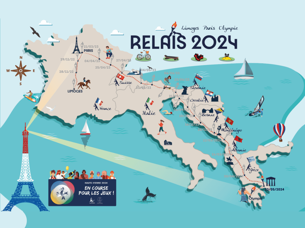 Lors de chaque rencontre, un relais 2 024 est réalisé pour que les participants puissent parcourir symboliquement la distance entre Limoges – Paris – Olympie (près de 3 280 km !).